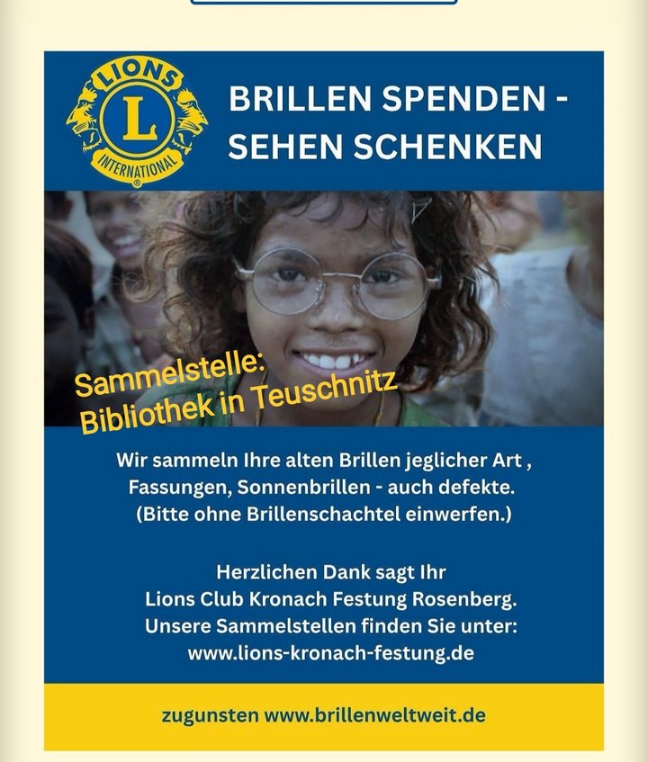 Unter dem Motto Brillen spenden - Sehen Schenken steht die Brillen-Sammelaktion des Lions Club Kronach.