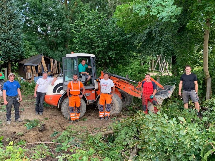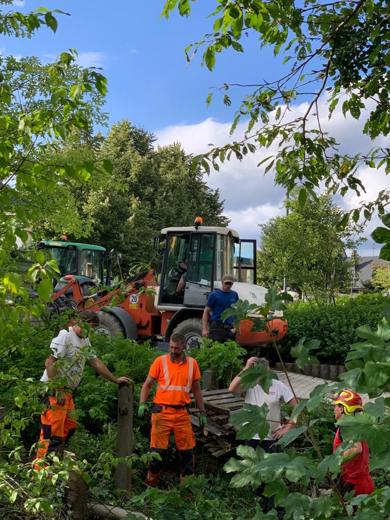 Am Mittwoch, 11.08.2021 begann ein Trupp freiwilliger Helfer mit den Vorarbeiten für das geplante Sanitärgebäude am Spielplatz Teuschnitz. In einem ersten Einsatz wurde das von der Stadt Teuschnitz angekaufte Grundstück entbuscht, geräumt und ein Teil des alten Zauns entfernt. Als nächstes werden die marode Gartenhütte sowie der restliche Zaun entfernt. Auf der dann freien Fläche soll noch heuer ein Sanitärgebäude für den Spielplatz entstehen. Das Gebäude beinhaltet ein WC, eine Wickelgelegenheit, einen Lagerraum sowie einen kleinen Verkaufsraum.